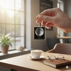 Unlock a Memory Every Day. Turn a mundane essential into a daily reminder. This durable plastic keychain features the exact star alignment and moon phase from your most significant date. Whether attached to your house keys or car fob, it’s a lightweight, meaningful way to carry your unique history in your pocket.